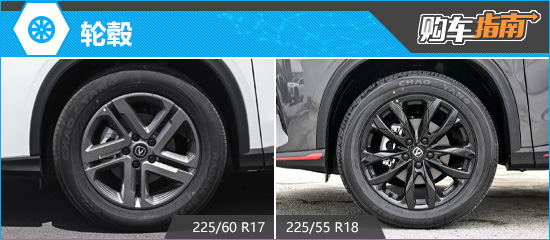 全新第二代长安X5 PLUS提供两种轮毂样式可选。两款低配车型配备17英寸双五辐枪灰轮毂,质感颇佳,匹配225/60 R17轮胎。其余车型搭载18英寸双五辐亮黑轮毂,造型更具力量感,轮胎规格为225/55 R18。